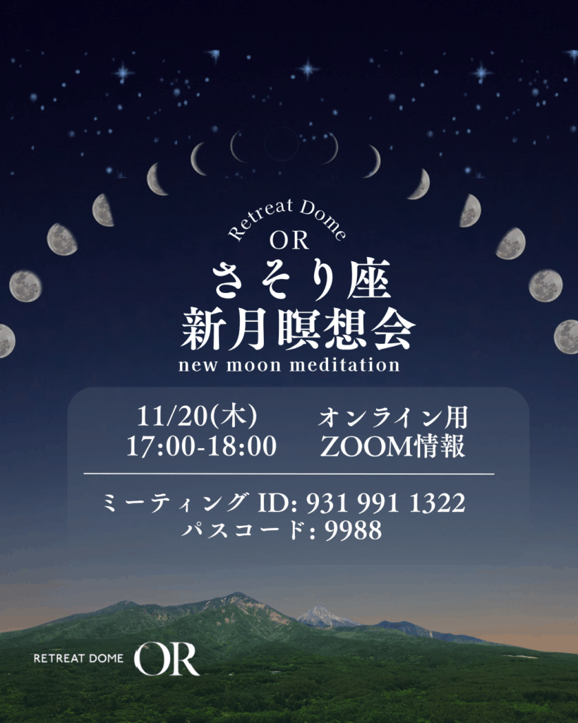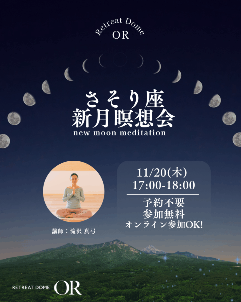 ぜひ、この機会に共にリトリートドームORにて共に瞑想をしませんか。