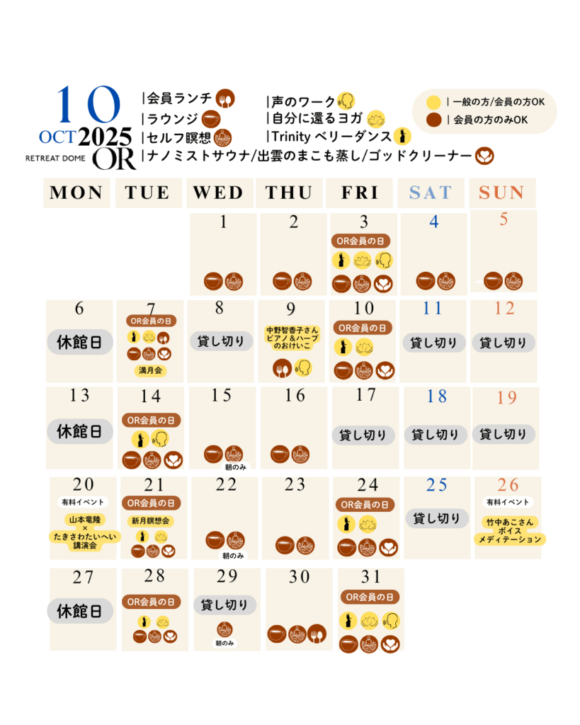 いつもリトリートドームORをご利用いただき、誠にありがとうございます。