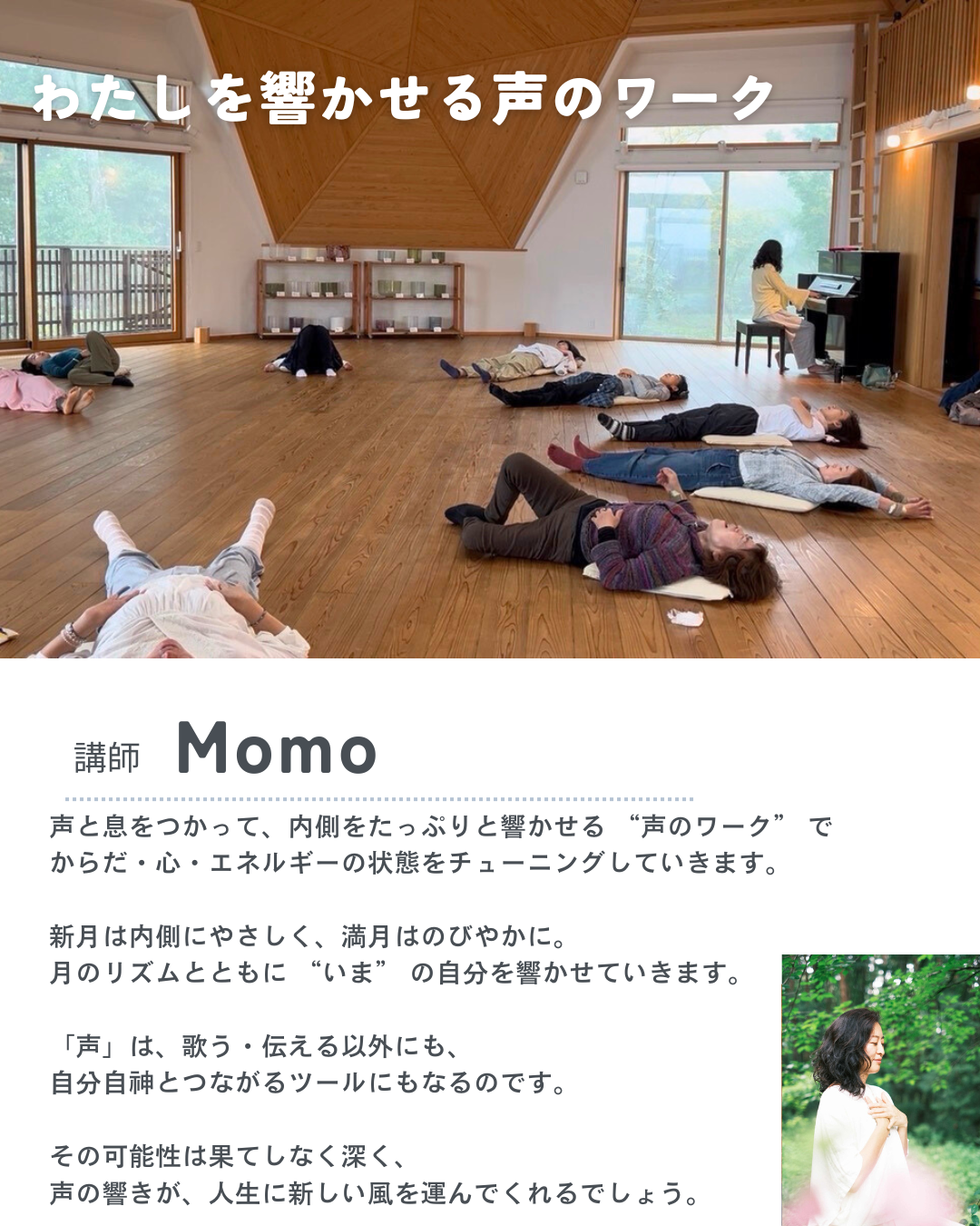 各クラス紹介 2026年2月1日 2月2日(月)各クラスのご紹介- 満月のオープンデー- 【各クラス紹介】 各講師へ直接お申込みまたは、当日参加も可能です。 ヨガ 講師:MIRI ご予約はコチラ▶︎ヨガクラスご予約 ベリーダンス 講師:Suranご予約はコチラ▶︎ベリーダンスご予約 わたしを響かせる声のワーク 講師:Momoご予約はコチラ▶︎ 声のワークご予約 🕊 開催概要 日時:2月2日(月)9:00〜19:10場所:リトリートドームOR(山梨県北杜市大泉町西井出5606) お問い合わせ info@or8.jpまたは「リトリートドームOR公式LINE」まで 前の投稿 2月2日(月)満月のオープンデーのご案内 次の投稿 2月17日(火)新月のオープンデーのご案内